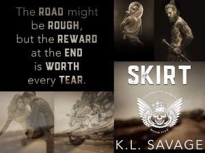 It’s really not all that often that I read an MC romance novel. Usually it’s not my preferred cup of coffee even if I do love the bad boy types. But when I saw the description for Skirt and then I saw the picture of the resigned man with his sword, I couldn’t help myself. I jumped at the chance to read this one.