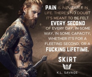Big burly guys? Tattoos? Penchant for a bad attitude? I know that’s what I always picture. But Skirt (Rohan) is so different. Yes – he’s a bad ass fighter and knows how to handle himself. Yes he loves a good fight and will protect his brothers to no end. But he’s also bashful and incredibly sweet. He has these adorable little quirks about him that I was totally unprepared for. His life has been hard and he never thought he would have anything all that great in his life, but life has a way of giving you back what you deserve ten-fold.