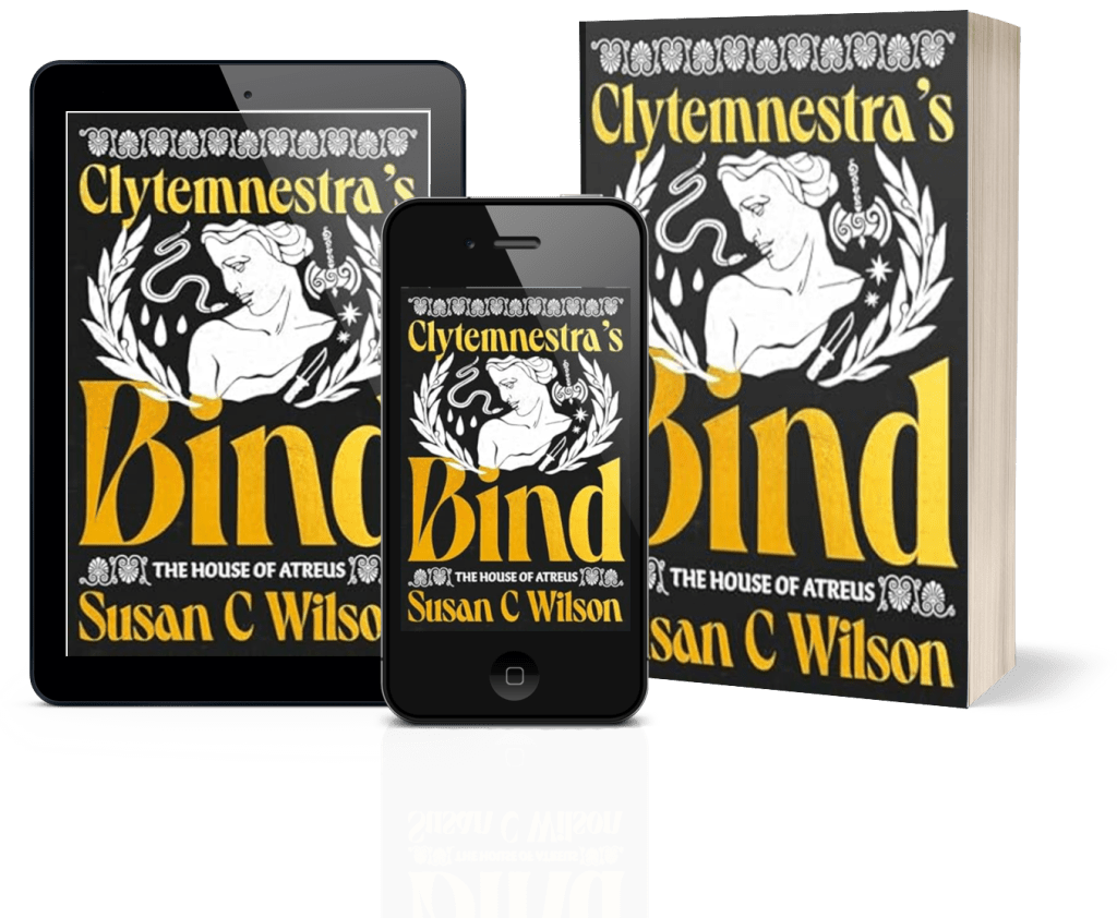 Clytemnestra’s Bind, her debut novel, was long-listed for the Mslexia Novel Competition 2019. It is the first in The House of Atreus trilogy and is published by Neem Tree Press.