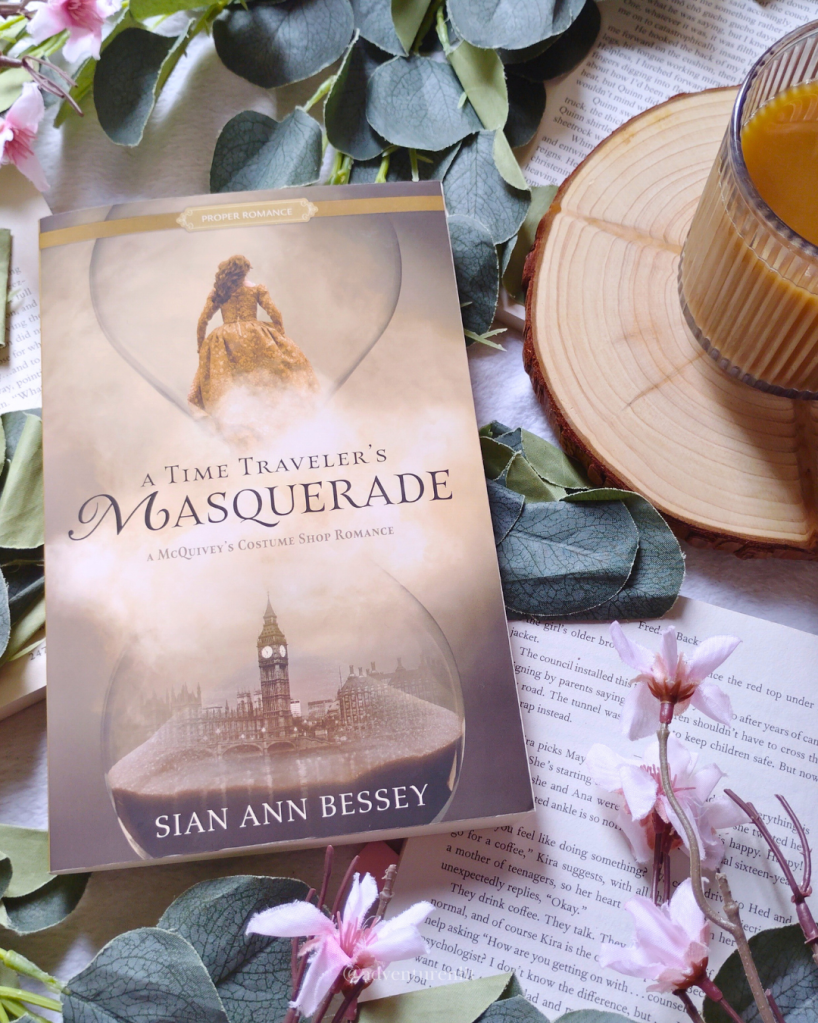 This was a very unique and heartwarming take on a historical fiction story. Most of what I read in this genre is placed in the Regency era and this book is actually set in the Jacobean era, 1605 to be exact. But let’s start from the beginning. Isla lives in 2025 and works as an assistant for a member of parliament. Their office is planning their annual costume party and Isla needs a costume to dress up as Wendy from Peter Pan. Her friend, and co-worker, advises her to visit McQuivey’s costume shop because all the best costumes are there.