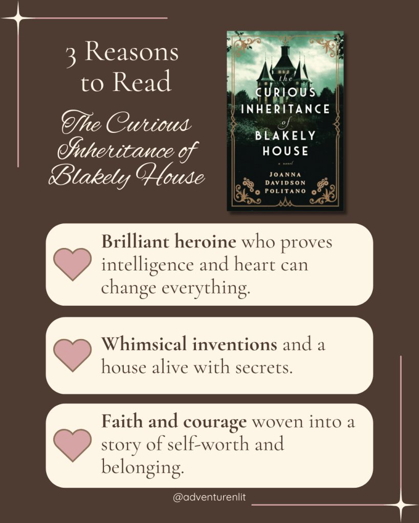 A whimsical and wonder-filled adventure with a brilliant, endearing heroine! The Curious Inheritance of Blakely House swept me into a gear-spun odyssey of inventions, mystery, and heart.