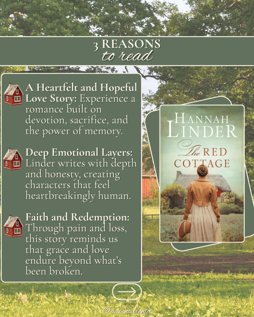 The Red Cottage captures the kind of love that doesn’t fade—it endures through tragedy, time, and even lost memory. Hannah Linder once again proves why she’s one of the most moving voices in inspirational historical fiction today.