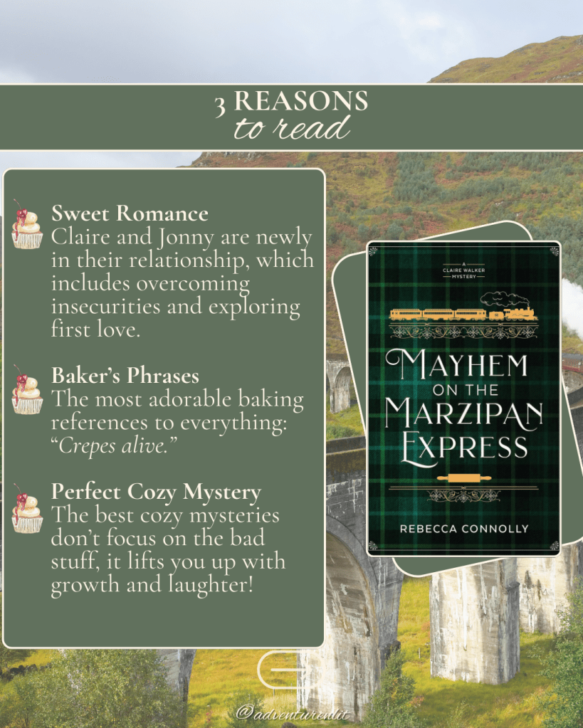 Amateur baker and part-time sleuth Claire Walker is looking forward to a vacation with her boyfriend, Jonathan Ainsley. The happy couple boards the famed Scottish train, the Mallaig Steam Express—temporarily renamed “The Marzipan Express” in honor of chef Alan Gables, who is hosting an exclusive culinary experience for his most devoted fans.