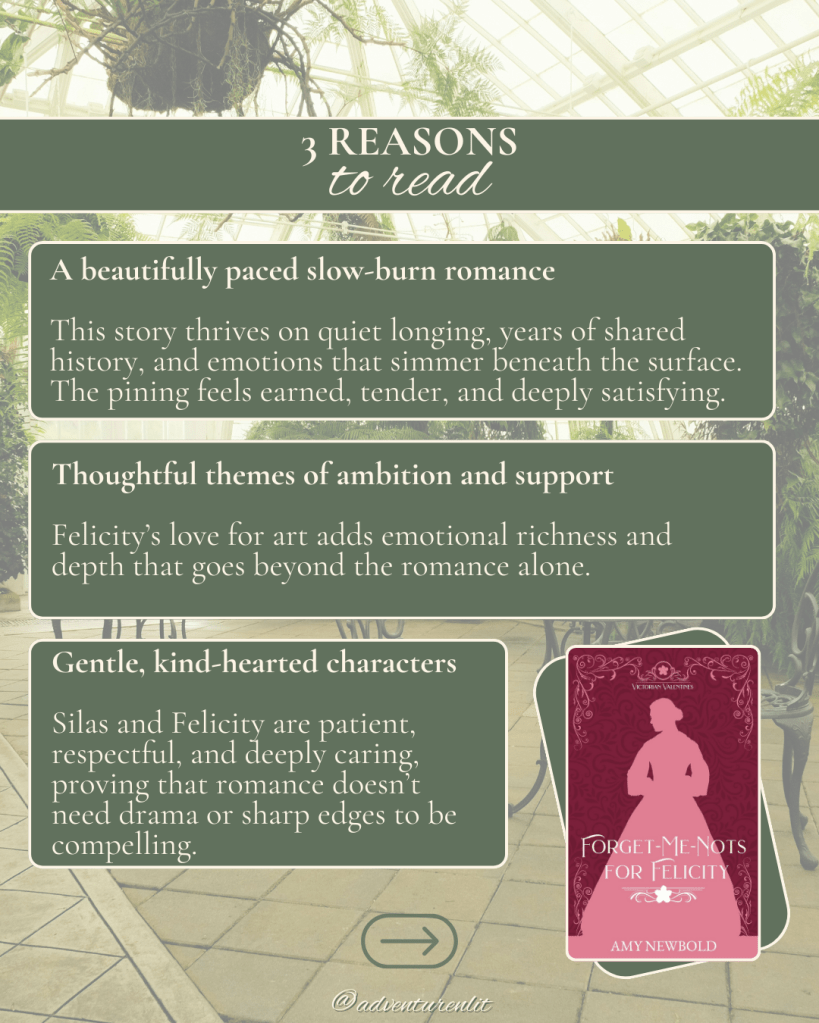 There’s something especially tender about a romance built on shared history – the kind where two people have loved each other quietly for years, even if they don’t yet have the courage to name it. Forget-Me-Nots for Felicity by Amy Newbold is exactly that kind of story: gentle, thoughtful, and deeply emotional in the most understated way. If you love slow-burn friends-to-lovers romances, meaningful letters, and stories where love grows patiently like a well-tended garden, this one may just steal your heart.