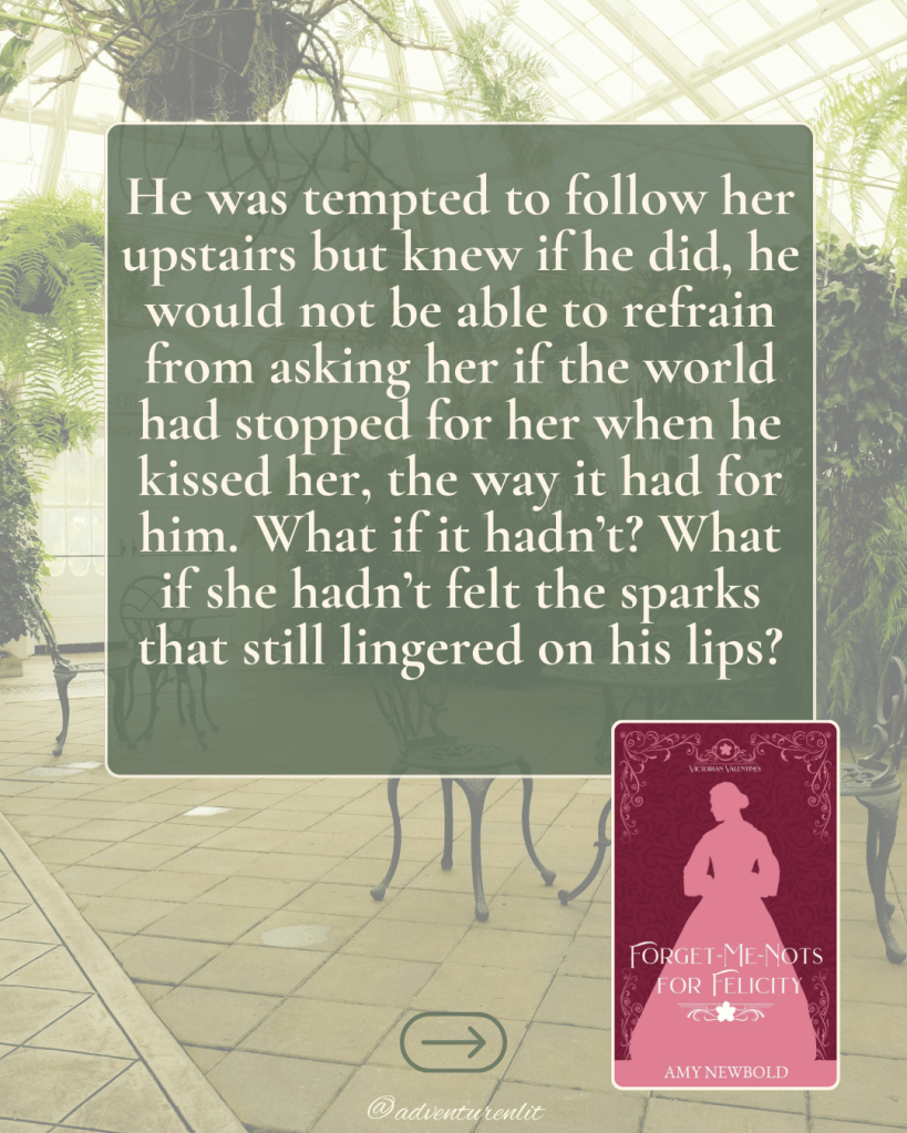 A friends-to-lovers romance, Forget-Me-Nots for Felicity is part of the Victorian Valentines series, a collection of sweet, standalone novellas inspired by the Victorian Language of Flowers and full of swoon-worthy, kisses only romance.