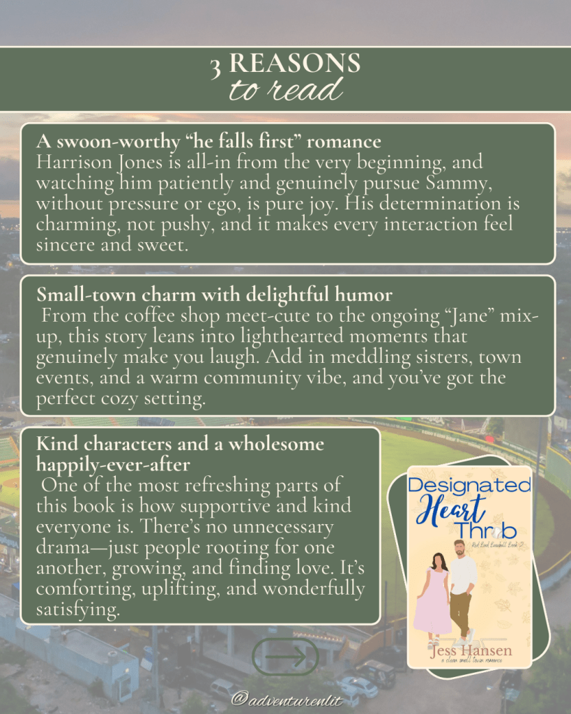 Some books are pure comfort reads – the kind that make you smile from the first chapter and leave you feeling lighter by the end. Designated Heart Throb is exactly that kind of story. With small-town charm, baseball banter, and a romance built on kindness and persistence, this is a heartwarming read that’s easy to fall in love with. If you’re craving a sweet, wholesome romance with characters you’ll want to keep visiting, Red Bird, Maryland is ready to welcome you.